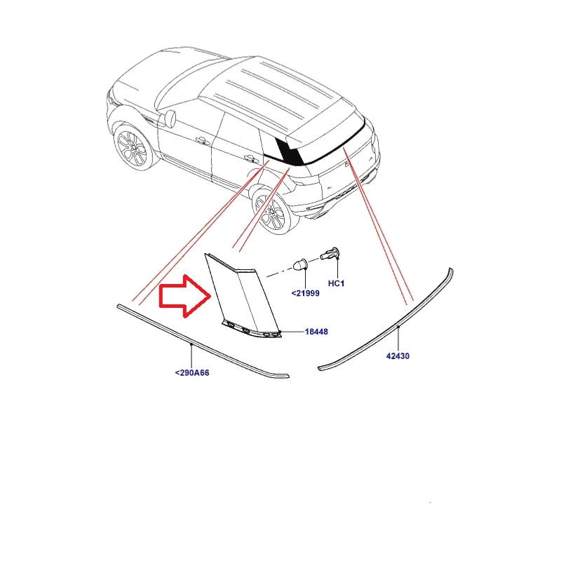 moulure noire extérieure de montant E arrière - Côté gauche - 5 portes - Range Rover Evoque à partir du numéro de châssis EH000001 - Origine LR